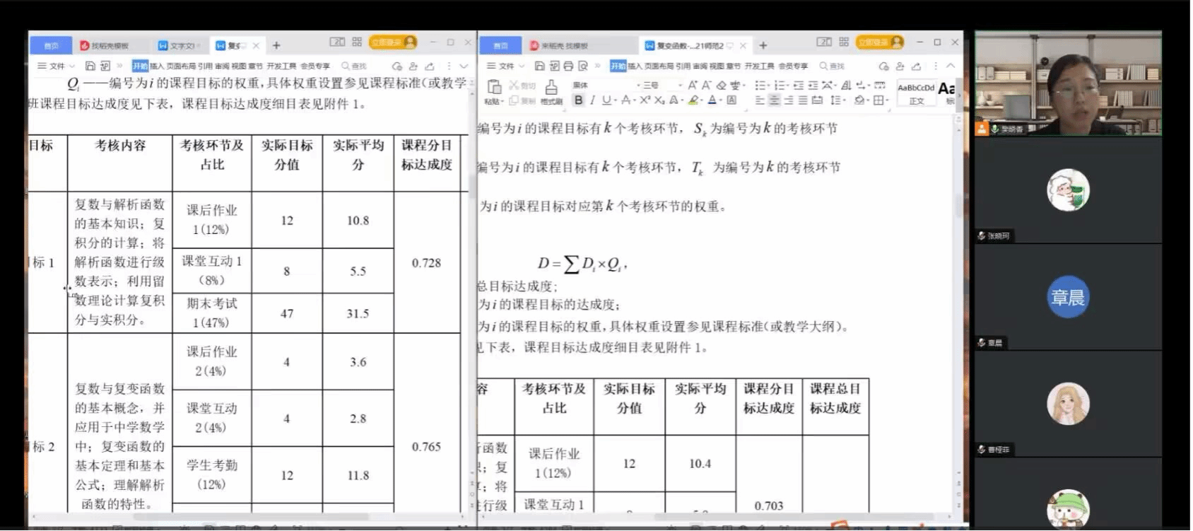 为扎实推进教学管理,提升教学质量,全面了解教学情况,今年会jinnianhuicom于9月26日、10月9日、10日、11日分别对数学与应用数学专业课程目标达成情况召开线上、线下会议(博约楼312)。数学与应用数学专业2022-2023学年第二学期授课教师栾庆芳、沈春芳、樊晓香、王宁等对课程目标达成情况进行分析反馈。