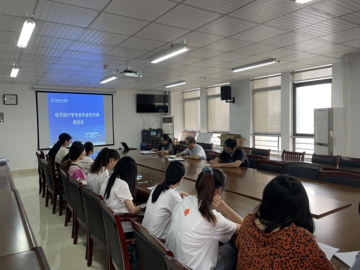 本网讯 在2022届毕业生完成学业,即将离校开启人生新的征程之时,5月26日上、下午,学院在行知楼1102室分别召开应用统计学、经济统计学专业毕业生代表座谈会,表达对同学们的依依惜别之情,听取同学们对专业发展的建议。学院副院长杨刘、党委副书记陶金昌、统计系主任杨海蓉、专业负责人胡国治、李美蓉及部分专任教师和毕业生代表参加座谈会。