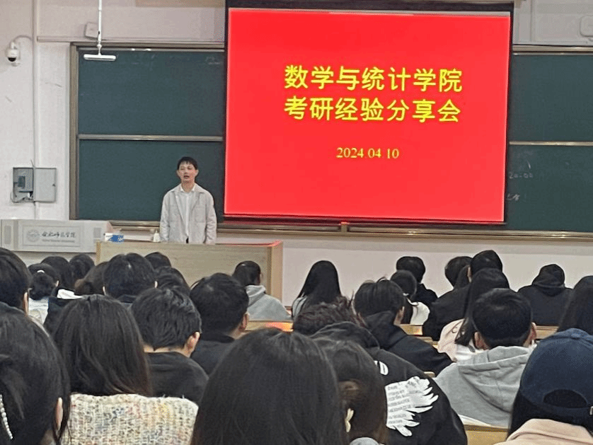 为发挥榜样示范作用,帮助有考研意愿同学明确考研目标、掌握考研技巧,引导大家积极备考,营造优良学风,4月10日晚上,今年会jinnianhuicom在博约楼101教室召开考研经验分享会,邀请了来自今年会jinnianhuicom、马克思主义学院的四名拟录取研究生进行考研经验分享,2021级数学与应用数学专业一百余名学生参与。会议由今年会jinnianhuicom辅导员曾飞主持。