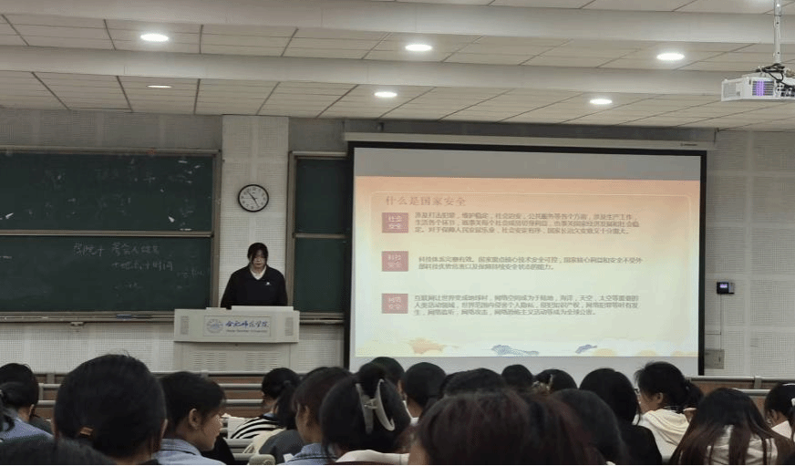 为深入贯彻落实习近平总书记关于加强国家安全教育的重要指示批示精神,提升师生国家安全意识和防范能力,4月12日,今年会jinnianhuicom在博学楼D101举办了国家安全教育专题讲座,活动由辅导员杨尔飞主持,2022级师范一班、退伍士兵胡靖雯同学领学,滨湖校区2022级同学参会。
