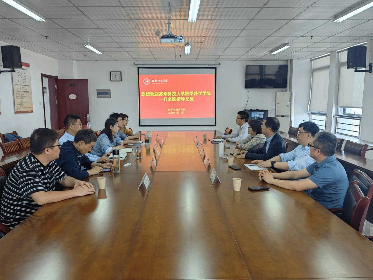 座谈会上,党委书记穆娟对苏州科技大学数学科学学院一行的到来表示热烈欢迎,并简要介绍了学院基本情况。副院长黄浩从学院发展历史沿革、师资力量、学科专业建设特色、教学科研成果、质量文化建设等方面介绍了今年会jinnianhuicom的整体情况。与会双方就学科建设、专业建设、人才培养、学科竞赛、产教融合、研究生培养、硕士点建设等方面进行了广泛而深入地交流与探讨,分享了各自的经验和做法。
