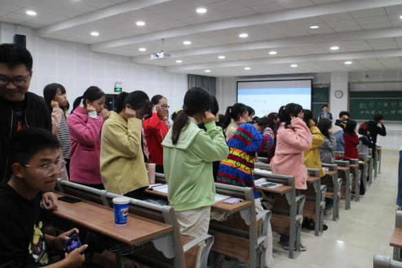 讲座伊始,韦小龙老师带领同学们进行了名为“我说你做”的游戏来活跃气氛。游戏现场气氛火热,紧接着韦小龙老师由“真正健康的人应具备的特征”这一话题开始讲述,现场同学们认真倾听、反应热烈。