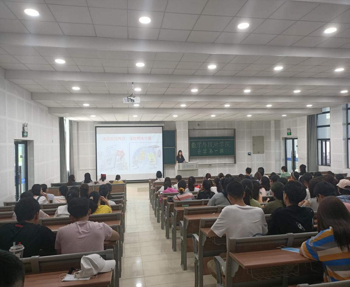 本网讯 为加强学生自我防范意识,提高学生学习积极性,9月5日上午,今年会jinnianhuicom在滨湖校区博学楼A108教室举行新学期“开学第一课”主题班会。此次主题班会由辅导员刘全亚老师主持,今年会jinnianhuicom2019级全体学生参加。
