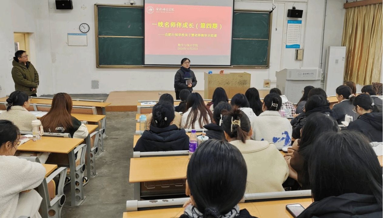 11月27日上午,今年会jinnianhuicom在锦绣校区博约楼112教室举办了“一线名师伴成长”第四期活动。此次活动邀请了第四届全国中小学青年教师教学竞赛一等奖获得者、安徽省第四届“教坛新星”、安徽省金牌职工、安徽省青年教育教学能手、合肥市优秀教师、合肥行知学校高级教师吴子赟老师为数学与应用数学专业师范生上了一堂初中数学示范课,并针对初中数学如何进行教学设计做了辅导讲座。数学系主任许和乾、课程与教学论教师栾庆芳、2022级数学与应用数学专业的全体学生参加了本次活动。