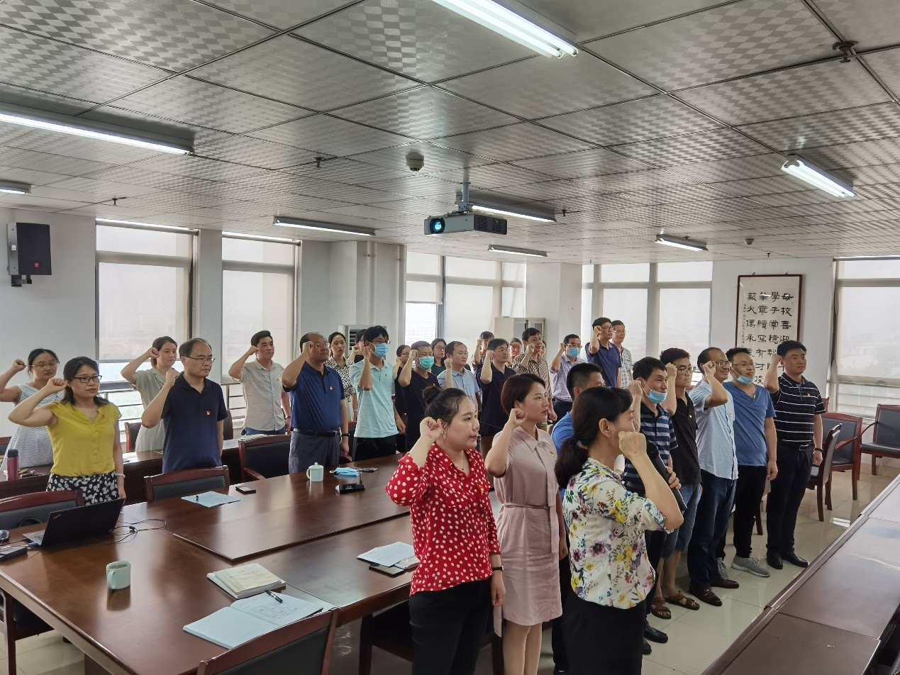首先,学院党委组织教职工党员重温了入党誓词,大家在党委书记郑支农的领誓下,面对党旗,庄严宣誓。