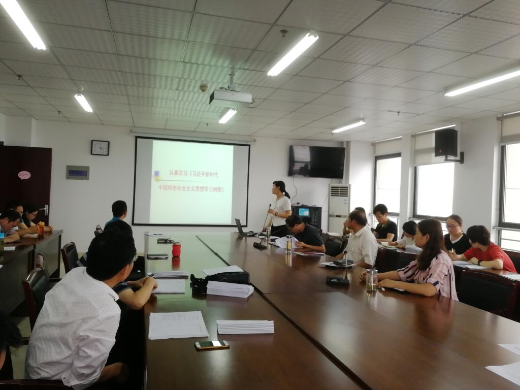 郑支农首先从为何要学习《习近平新时代中国特色社会主义思想学习纲要》(以下简称《纲要》)方面着手,强调了学习《纲要》的重要性。她指出学习《纲要》是我们党的传统、是由习近平新时代中国特色社会主义思想的重要性决定的、是由坚持社会主义办学方向决定的,同时具体阐述了习近平新时代中国特色社会主义思想的重要性,强调指出:习近平新时代中国特色社会主义思想是全党全国人民的思想之旗,精神之魂,承载着中国共产党人的初心和使命。其次,从“学什么”的角度,分别介绍了《纲要》的绪论、主体部分、结语的主要内容,详细介绍了“八个明确”和“十四个坚持”核心内容。强调了《纲要》通篇贯穿着“什么是新时代中国特色社会主义、如何坚持和发展新时代中国特色社会主义”这条主线,并介绍了如何把握主要内容。最后,郑支农讲授了该如何学,她强调院党总支、各支部将按照上级党组织通知精神,组织全体党员认真读原著、学原文、悟原理,并紧密结合“不忘初心、牢记使命”主题教育,把《纲要》纳入学习计划,作出周密安排,开展多形式、分层次、全覆盖的学习培训。各位党员要在“三个方面下功夫”,即多思多想、学深悟透,系统全面、融会贯通,知行合一、学以致用上下功夫,做到学思用、知信行的统一,做到懂、通、实。同时,要认真思考作为青年学生的引路人、人生导师,如何立德树人?怎样争做“四有”好老师?那就是要认真学习《纲要》,切实用习近平新时代中国特色社会主义思想武装头脑、指导实践、推动工作。把学习《纲要》的认识体会转化为做好本职工作、推动事业发展的实际举措与扎实成效,真正用习近平新时代中国特色社会主义思想铸魂育人,带头并引导广大学生增强“四个意识”、坚定“四个自信”、做到“两个维护”,努力培养德智体美劳全面发展的社会主义建设者和接班人。